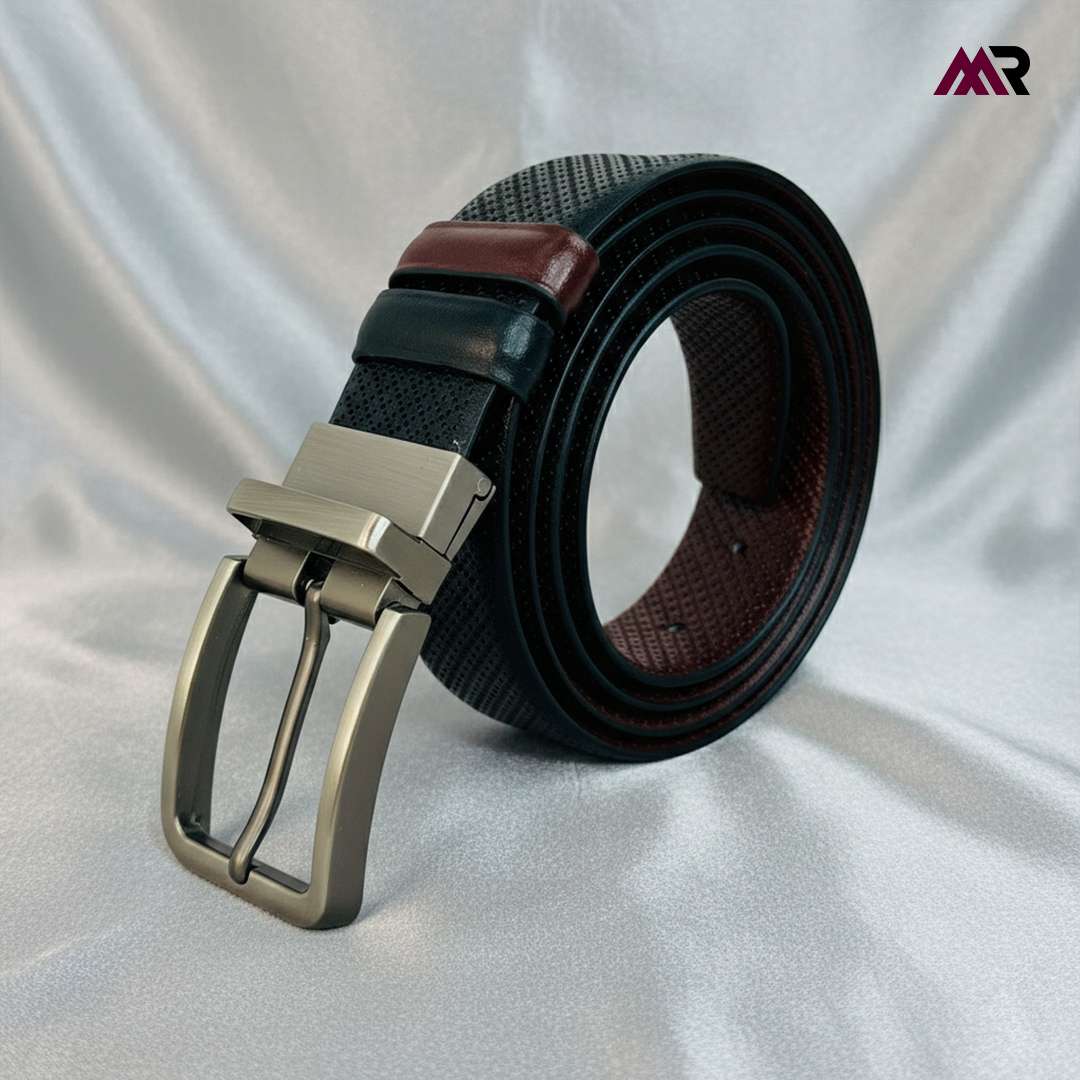 Men’s Dot Pattern Leather Belt – Dual Tone Moving Brockless